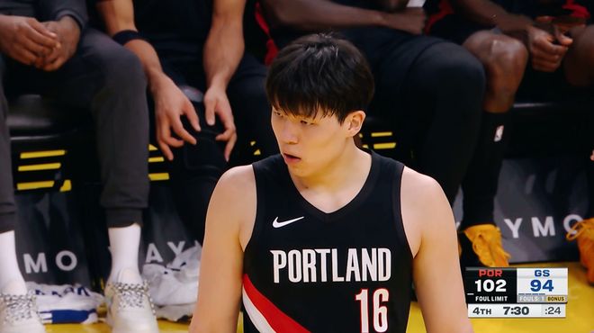 杨瀚森4分4板1助攻 开拓者不敌勇士