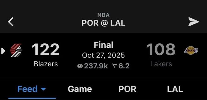 2025年10月28日 杨瀚森低迷1分1板1误 开拓者3人20+力克湖人 里夫斯空砍41分